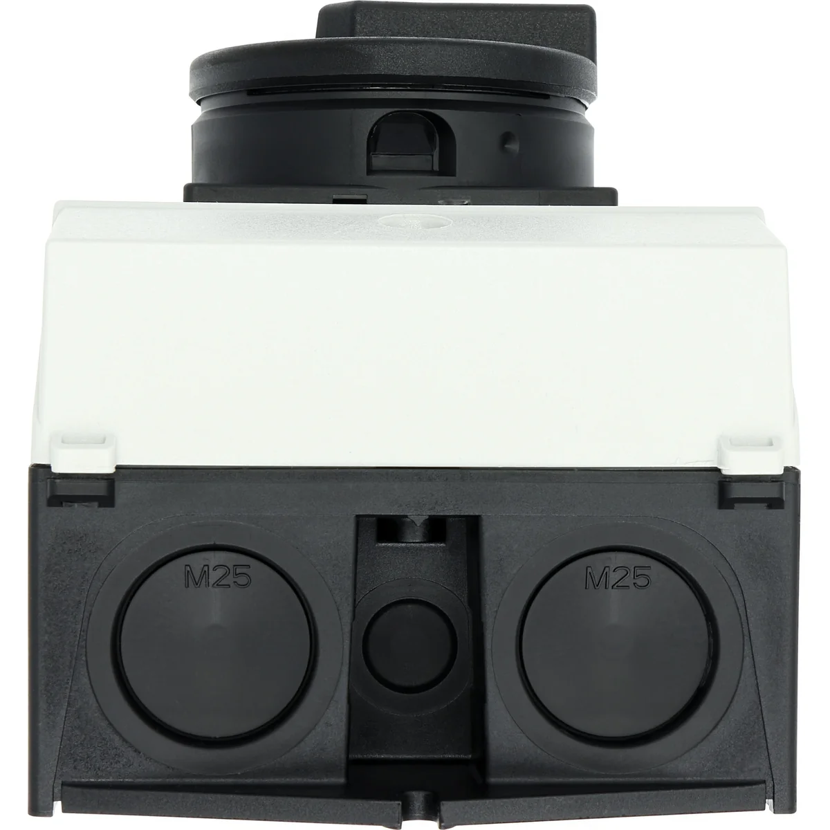 Spínač On/Off In=32A P=15kW. S černým knoflíkem se zámkem na visací zámek. Zavřeno v pozici 0