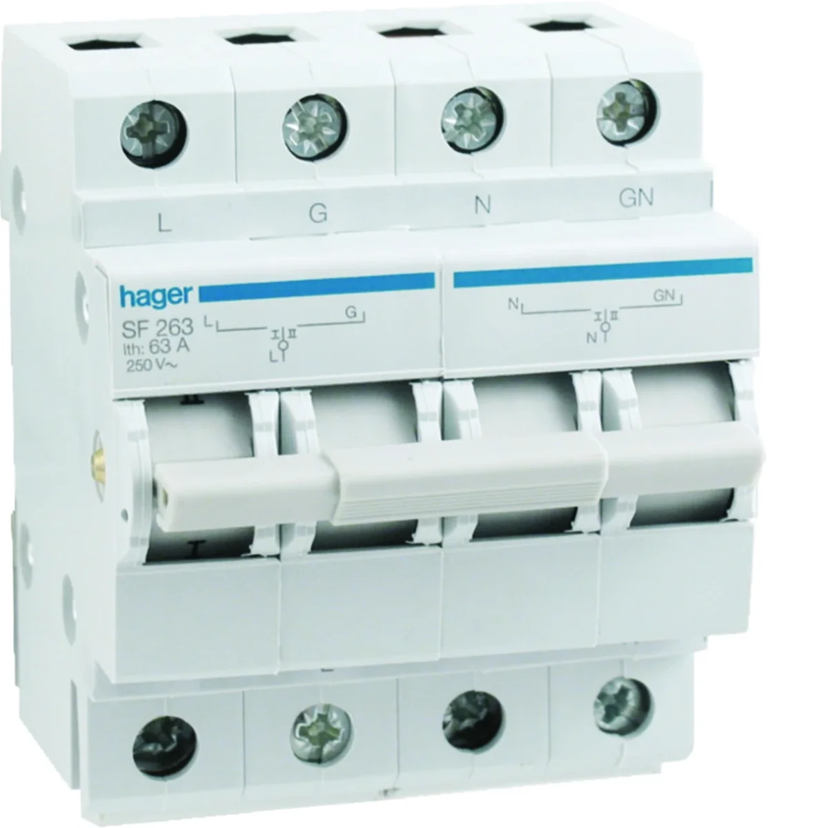 Modulární síťový generátorový spínač 63A, dvourychlostní I-0-II SF263