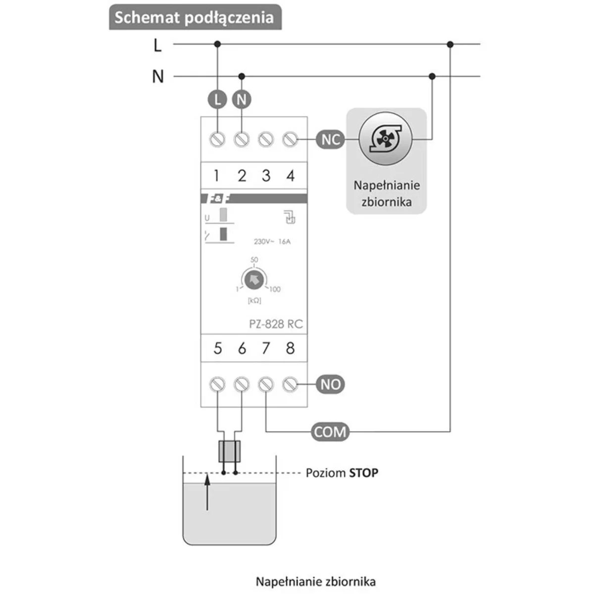 Relé regulace hladiny dešťové vody 230V 16A 35mm PZ-828RC-WD