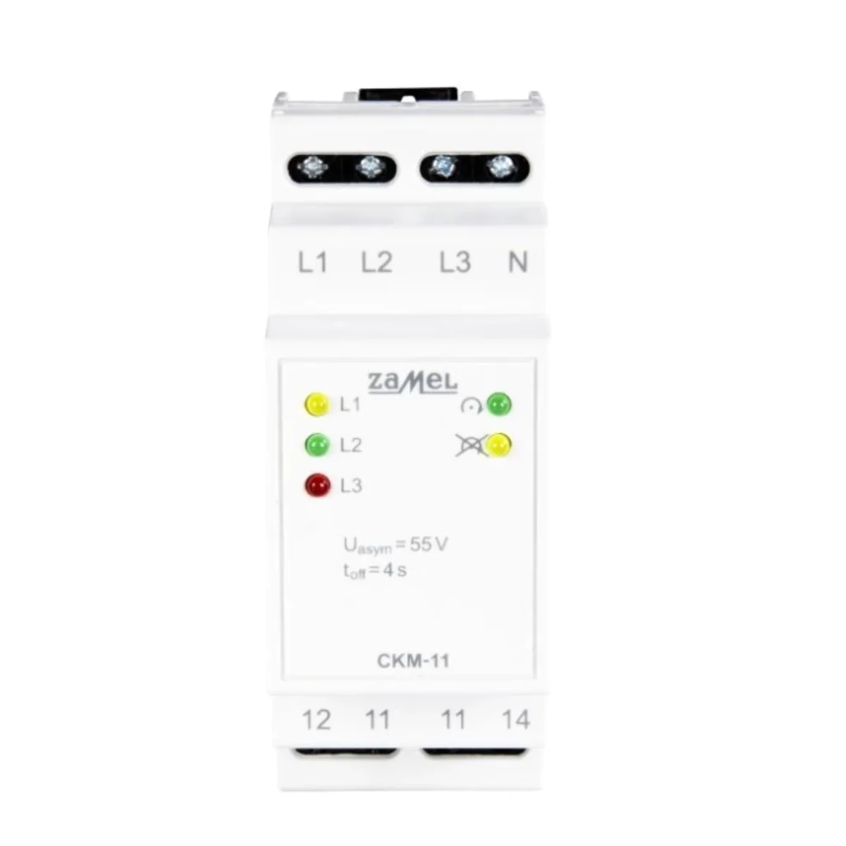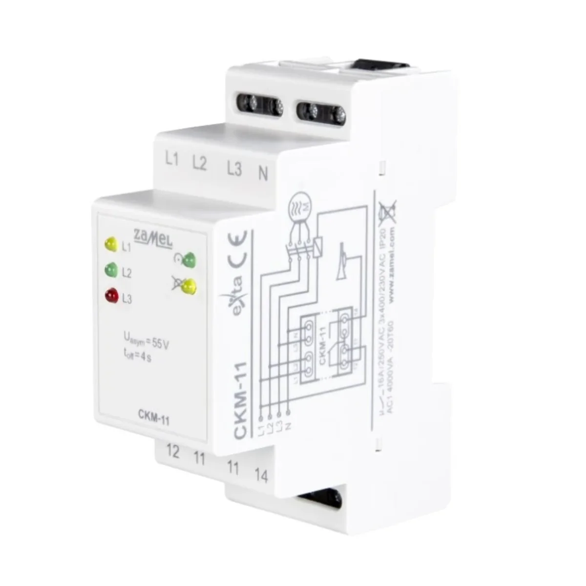 Snímač fázového sledu CKM-11 se používá k ochraně zařízení napájených třífázovou sítí (např. motory) před poškozením v případě výpadku fázového napětí, asymetrie fázového napětí nebo nesprávného sledu fází. Prahová hodnota asymetrie je z výroby nastavena na 55 V. Snímač také chrání před symetrickými poklesy napětí tím, že deaktivuje relé, pokud napětí na kterékoli fázi klesne pod 150 V (bez ohledu na úroveň asymetrie). Zařízení je napájeno z jakékoli fáze, což znamená, že napětí na jedné fázi je dostatečné pro plnou funkčnost. 4sekundové zpoždění vypnutí a hystereze napětí činí snímač odolným vůči krátkodobým výkyvům napětí.