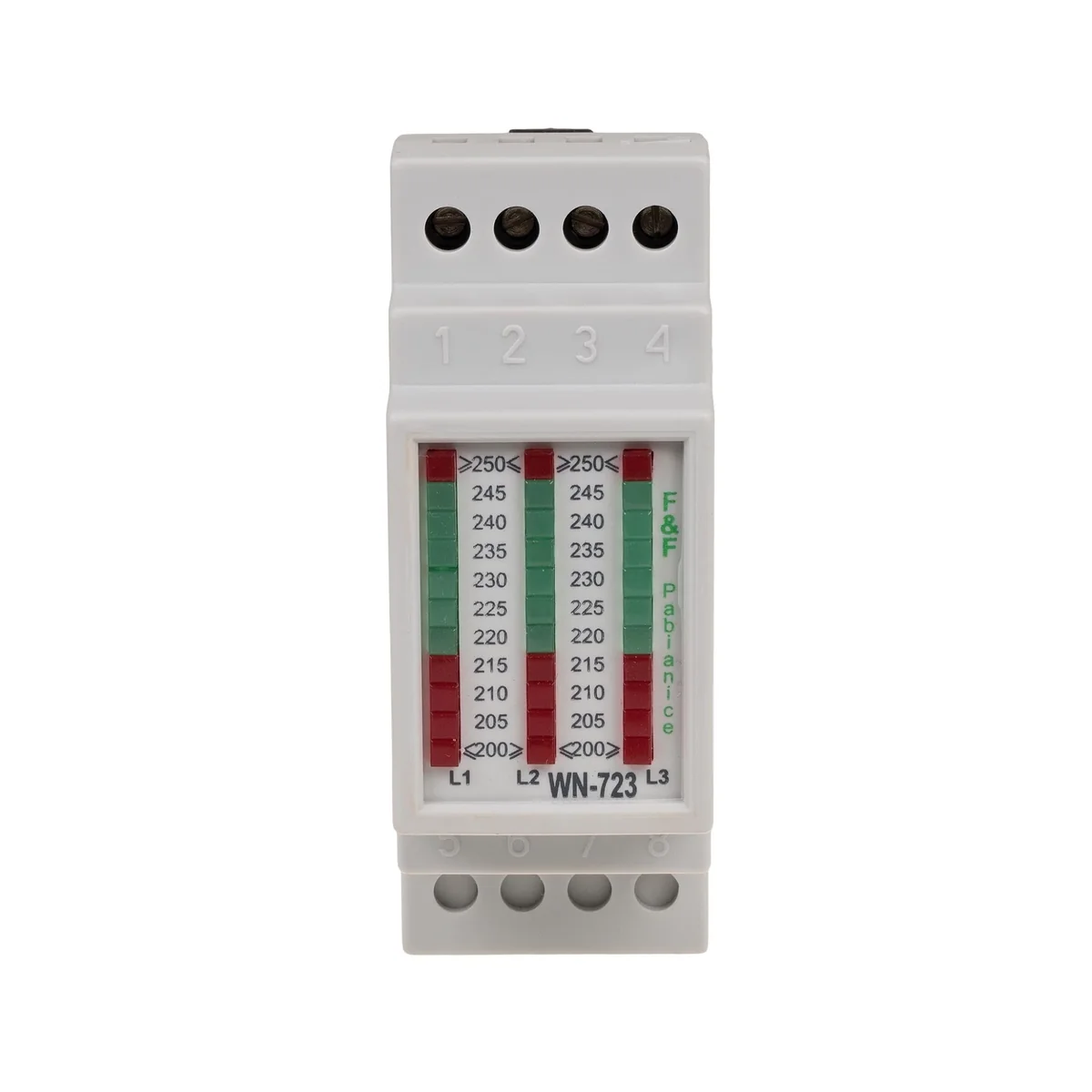 Indikátor napětí WN-723 slouží pro kontinuální měření hodnot napětí v třífázové síti. Udávaný rozsah napětí pro každou fázi je od 205 do 245 V s přesností čtení 2,5 V. LED osvětlení indikuje hodnotu napětí popsanou ve své výšce. Pokud svítí dvě LED, je hodnota napětí průměrem hodnot popsaných v jejich výškách. Hodnota napětí v tolerančním rozsahu (215 až 245V) je indikována zelenými LED, ostatní hodnoty jsou indikovány červenými LED. Napětí rovné nebo vyšší než 250V je indikováno nejvyšším červeným rozsvícením LED. Napětí rovné nebo nižší než 200V je indikováno nejnižším červeným rozsvícením LED