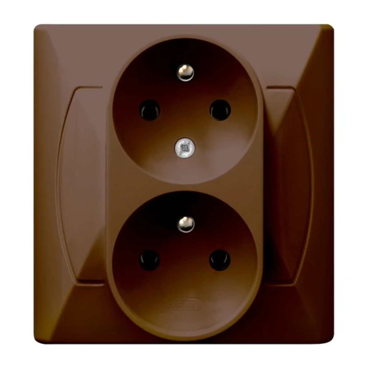 Dvojitá elektrická zásuvka, uzemněná, s funkcí fázové invariance.