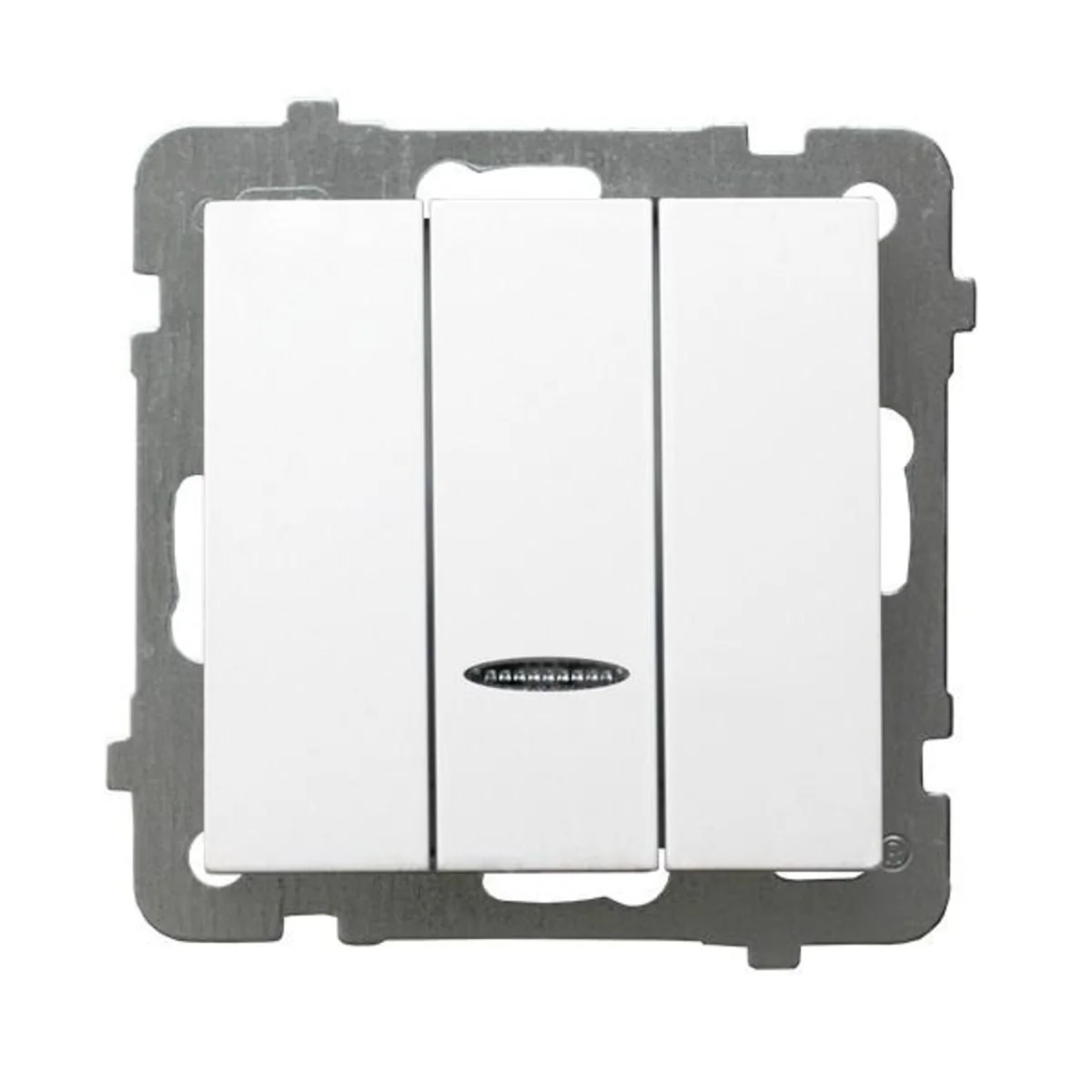 Trojitý vypínač s podsvícením z řady As od výrobce Ospel. Katalogové číslo produktu je ŁP-13GS/M/00.