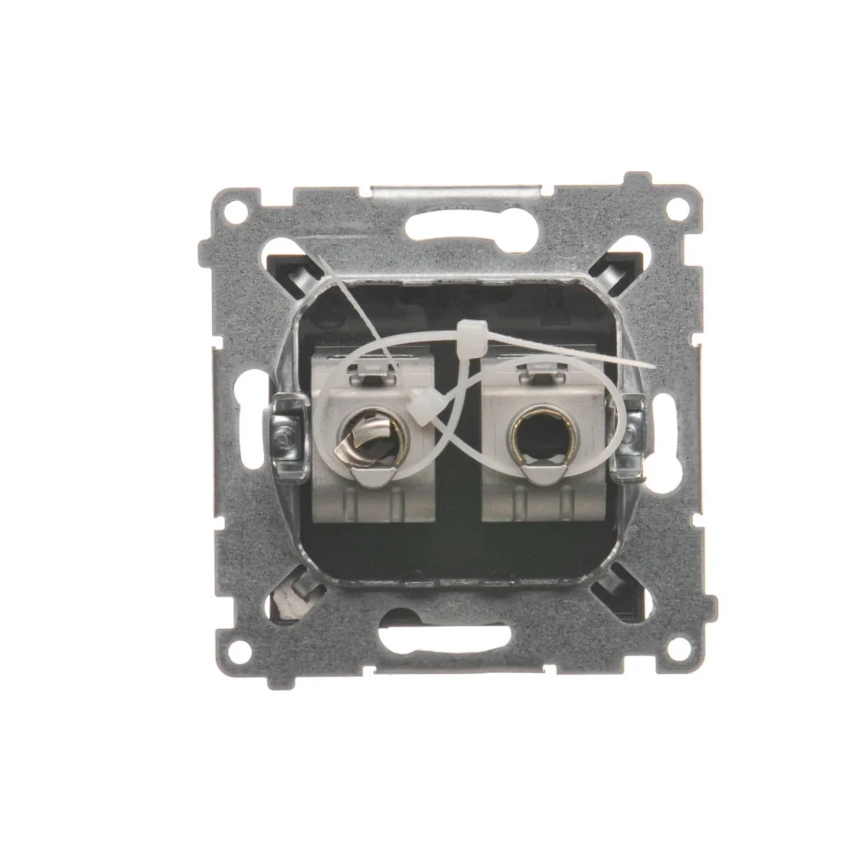 Počítačová zásuvkas dvojitým stíněním RJ45 kategorie 6, s protiprachovým krytem, řadaSIMON 54. Vyrobeno z plastu. Se svorkou pro propichování izolace.
