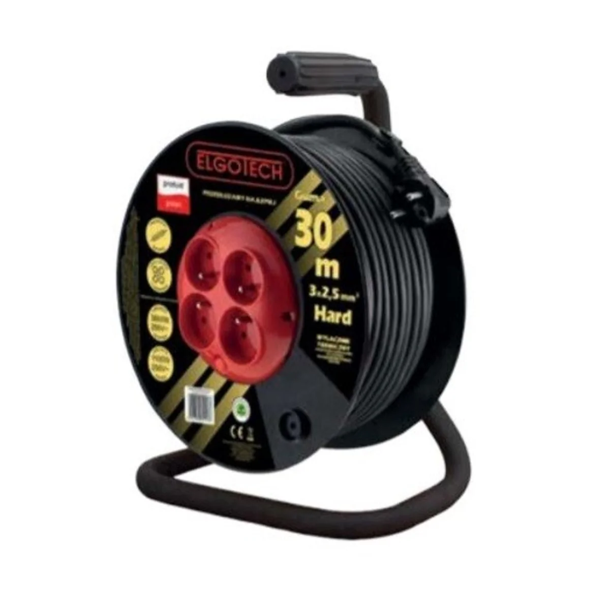 HARD prodlužovací kabel navijáku 4 zásuvky š 25mm H05RR-F 3x2,5 černý PZB-40-25G/2,5