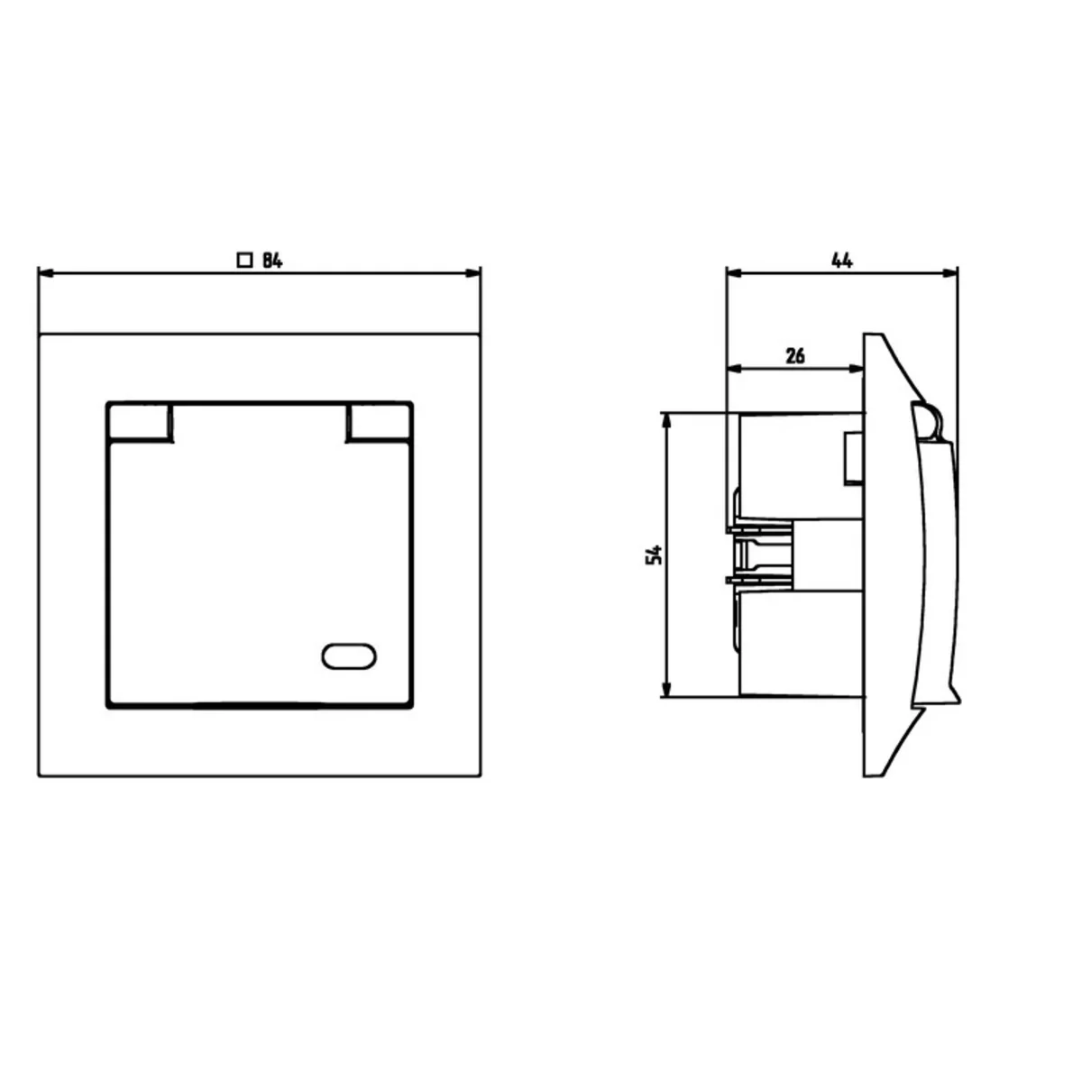Hermetická zásuvkavybavená klapkou, uzemněná, s proudovými uzávěry. Měl by být použit rám.