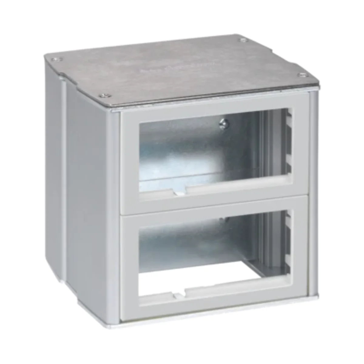 Oboustranná KT dvoupatrová minivěž, možná instalace čtyř modulů 45x45 mm na stranu - pro rozvody Simon Connect. Odolnost proti nárazu IK10. Maximální okolní teplota: +120°C