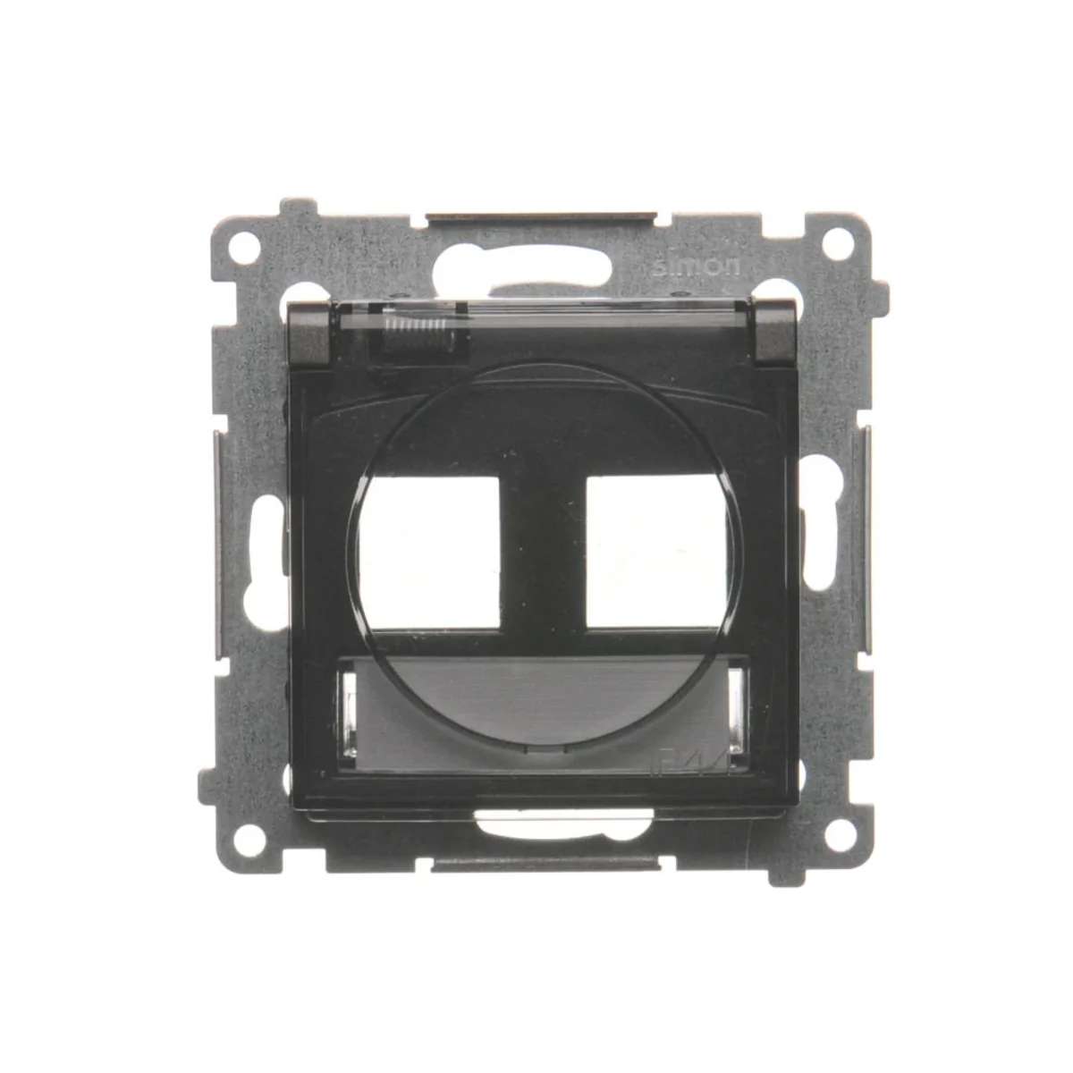 Kryt pro telekomunikační zásuvky IP44 na Keystone, dvojitý, s popisovým polem, průhledná klapka, antracit DKP2B.01/48A