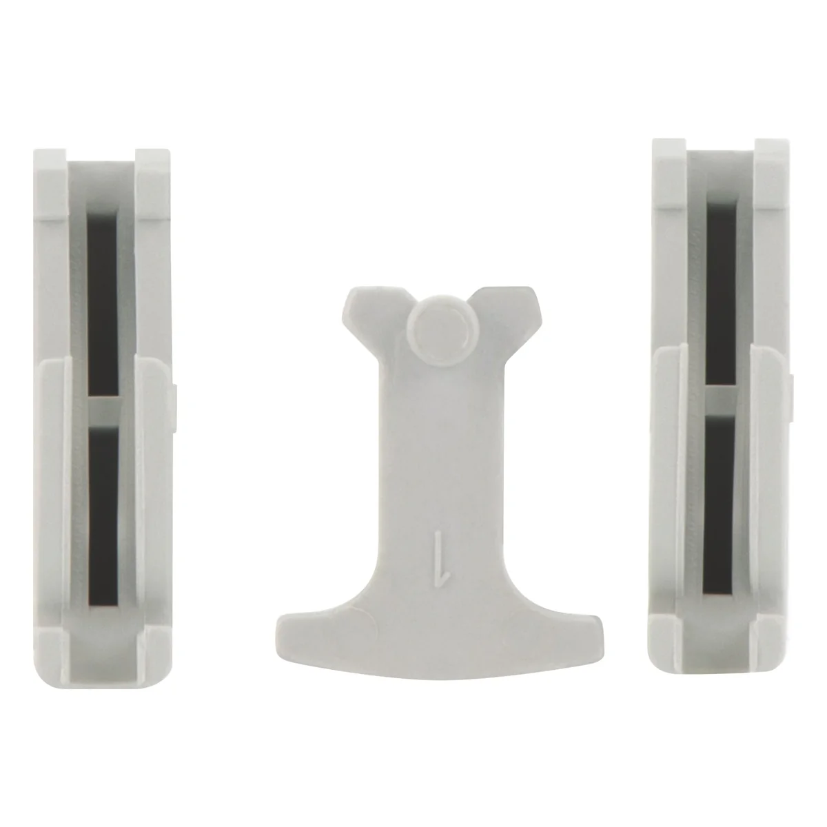 Mechanické zámky pro DILM7. Pro dva stykače ovládané stejnosměrným nebo střídavým proudem, ve vertikální nebo horizontální orientaci. Rozteč mezi stykači 0 mm, včetně konektorů. Mechanická odolnost 2,5 x 106 spojů. DILM150-XMV obsahuje montážní desku pro stykače. Další moduly pomocných kontaktů jsou možné