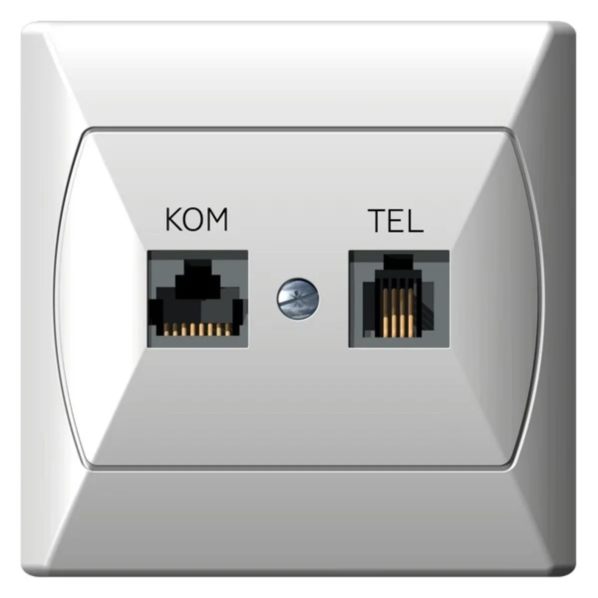 Počítačová a telefonní zásuvka RJ45 kategorie 5e (8kolíkový) + RJ11 (4kolíkový). Používá se k připojení telefonního kabelu a kroucené dvoulinky, nestíněného signálového kabelu kategorie 5e.