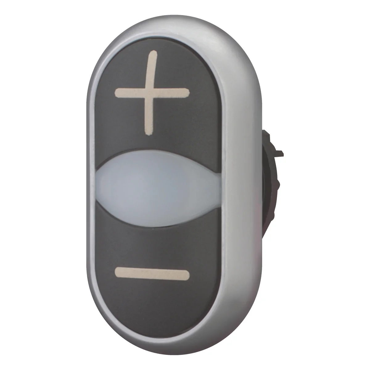 Dvoutlačítkový pohon s vratnou pružinou, černý s popisem +, -