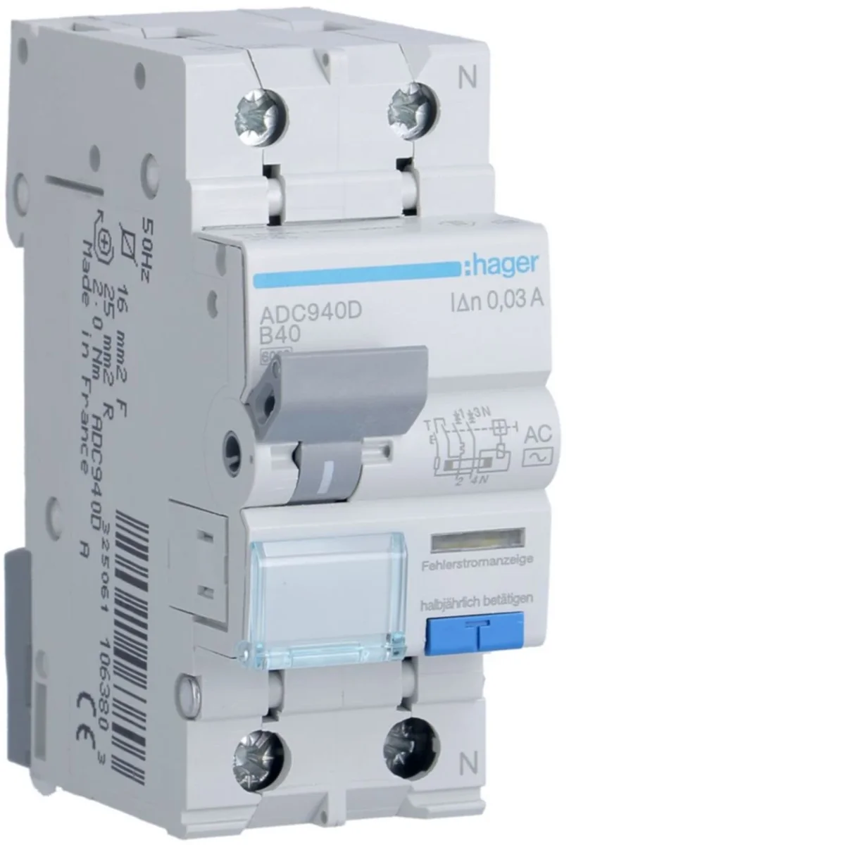 RCBO Proudový chránič s nadproudovým prvkem 1P+N 6kA B 40A/30mA typ AC ADC940D