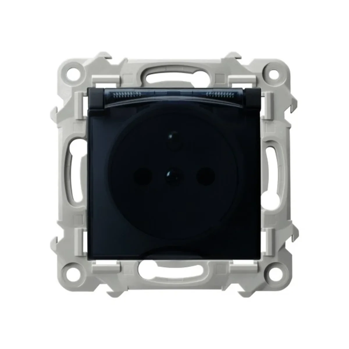 SAPPHIRE Zásuvka odolná proti stříkající vodě s uzemněním IP-44, průhledný kryt, černá metalíza GPH-1ZZ/M/33/D
