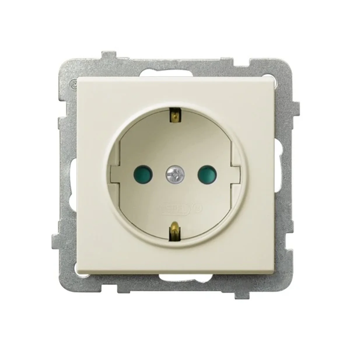 Elektrická zásuvka ze série Sonata od výrobce Ospel. Katalogové číslo produktu je GP-1RSP/M/27.