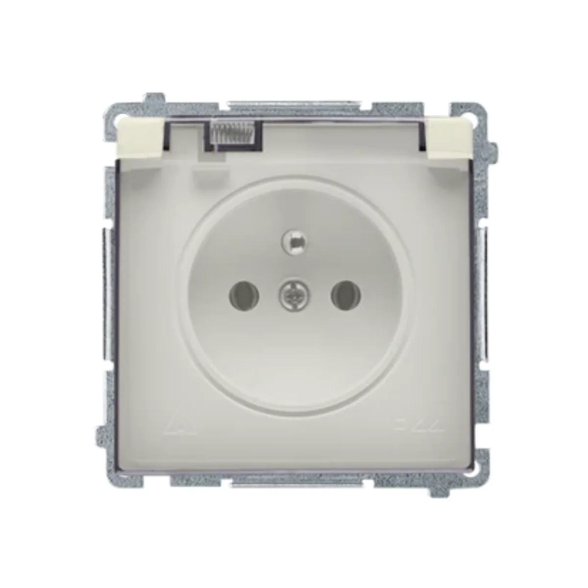 Jednopólová zásuvka s uzemněním, verze IP44, s proudovými uzávěry.