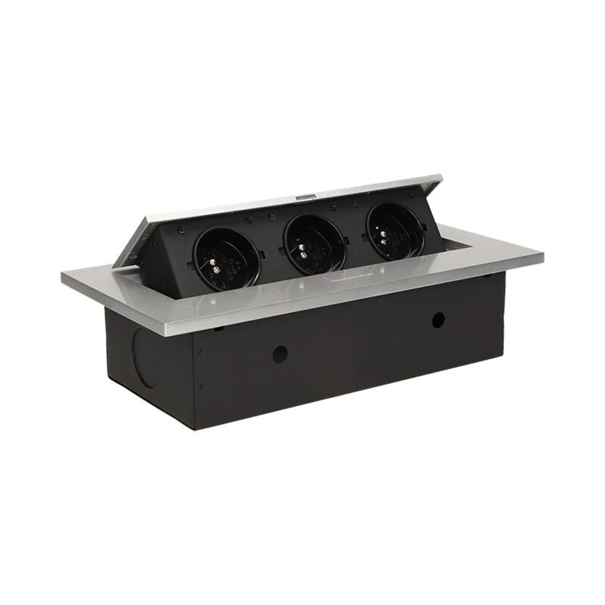 Zásuvky zapuštěné do desky, 3x230VAC, stříbrné OR-AE-1335/G