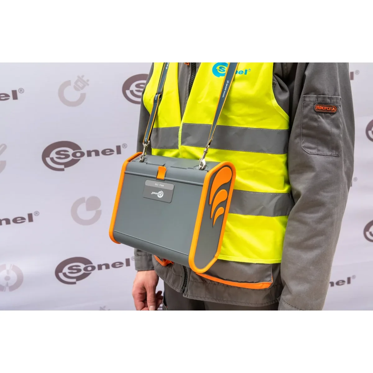 Postroje jsou dokonale přizpůsobeny měřičům Sonel a na konci mají karabiny. Tmavě šedá s oranžovými prvky.