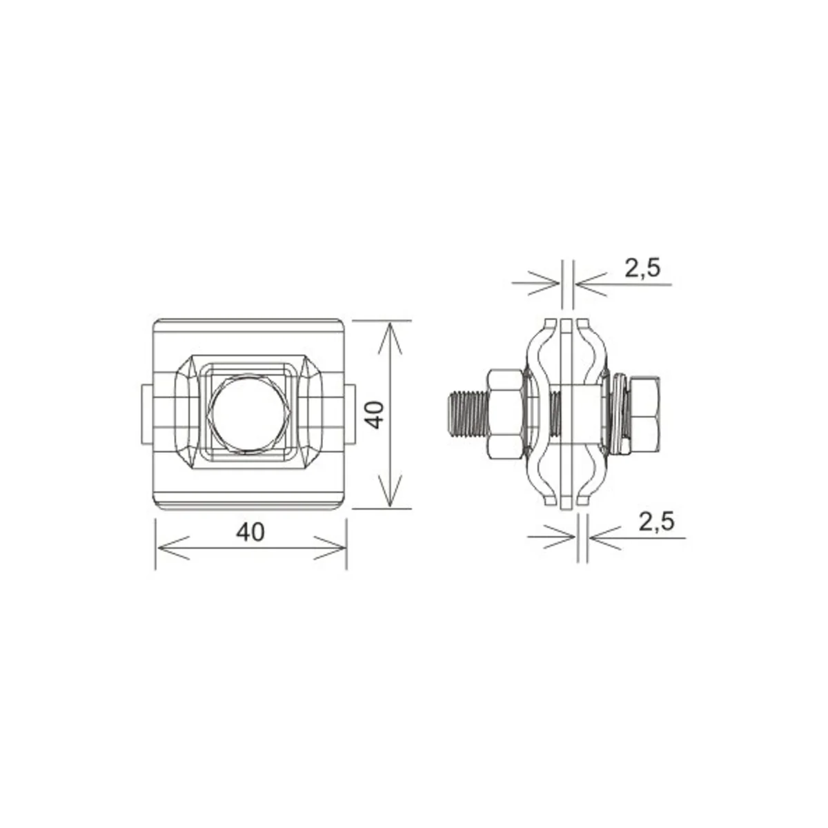 Připojení kulatých kabelů v paralelní, křížové konfiguraci. Třída proudového odporu H=100 kA