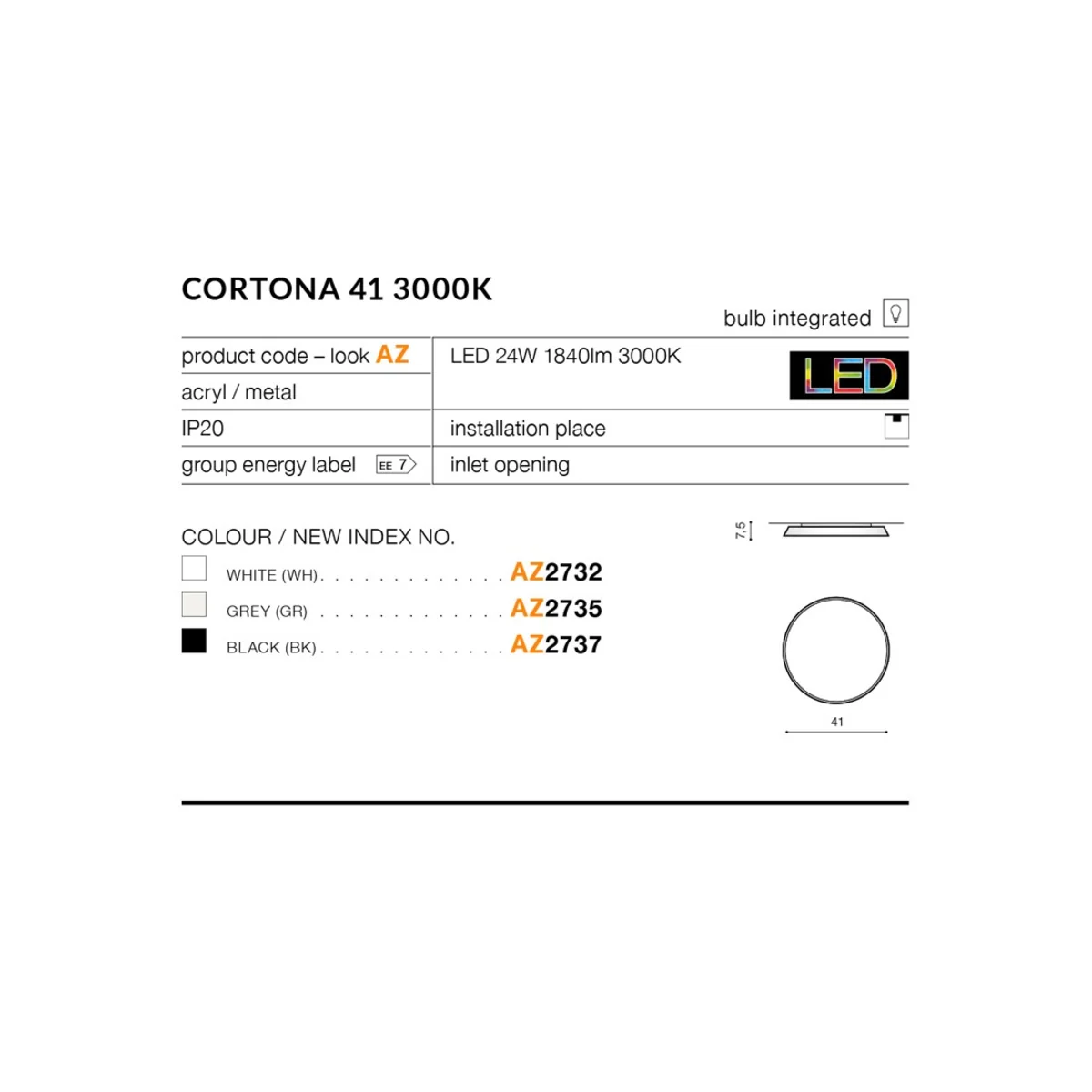 CORTONA 41 3000K Stropní svítidlo, černé AZ2737