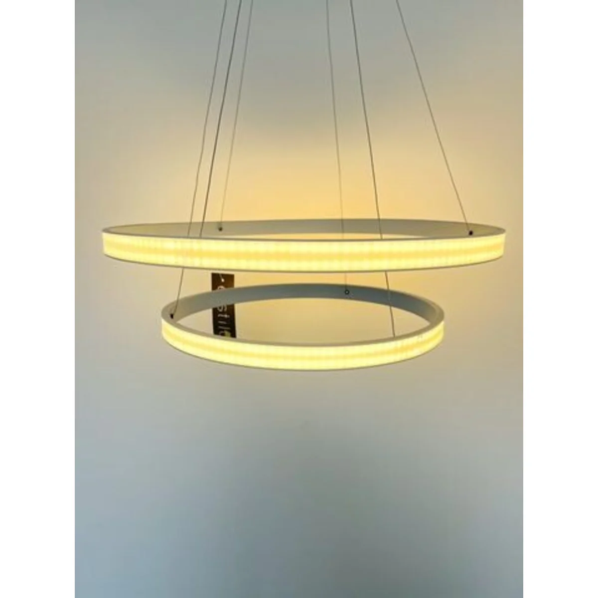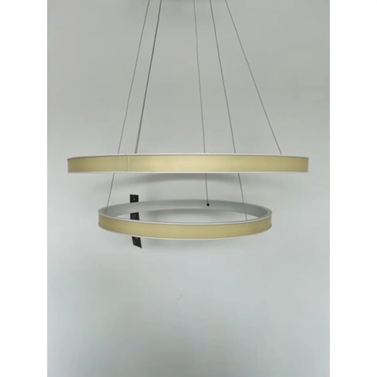LARGO je závěsné svítidlo sestávající ze dvou bílých kruhů.