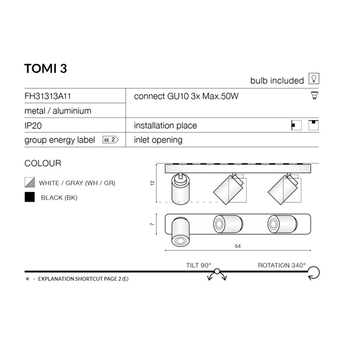 TOMI 3 Nástěnné a stropní svítidlo, černé AZ0680