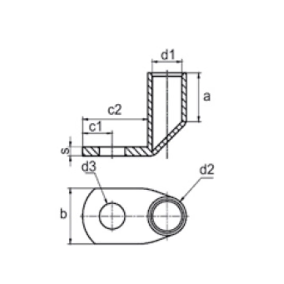 90° úhlová trubková koncovka s očkem, pocínovaná měď, 50 mm², pro šroub M12, 5 ks. SE90-05012