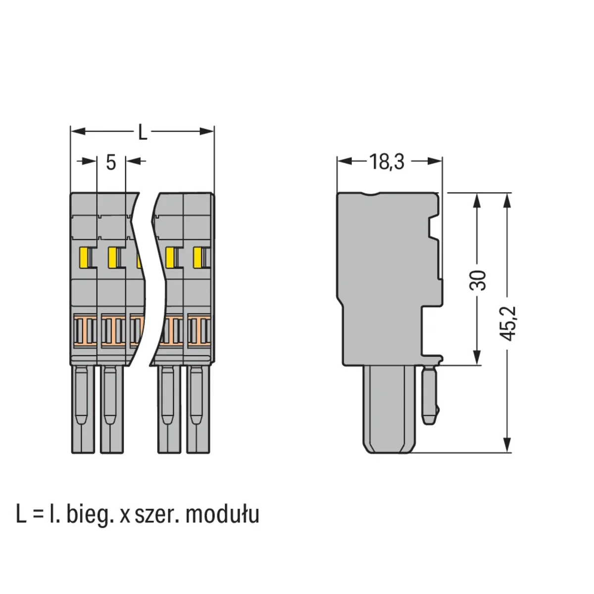 Przekrój przyłączanego przewodu linkowego z końcówką tulejkową