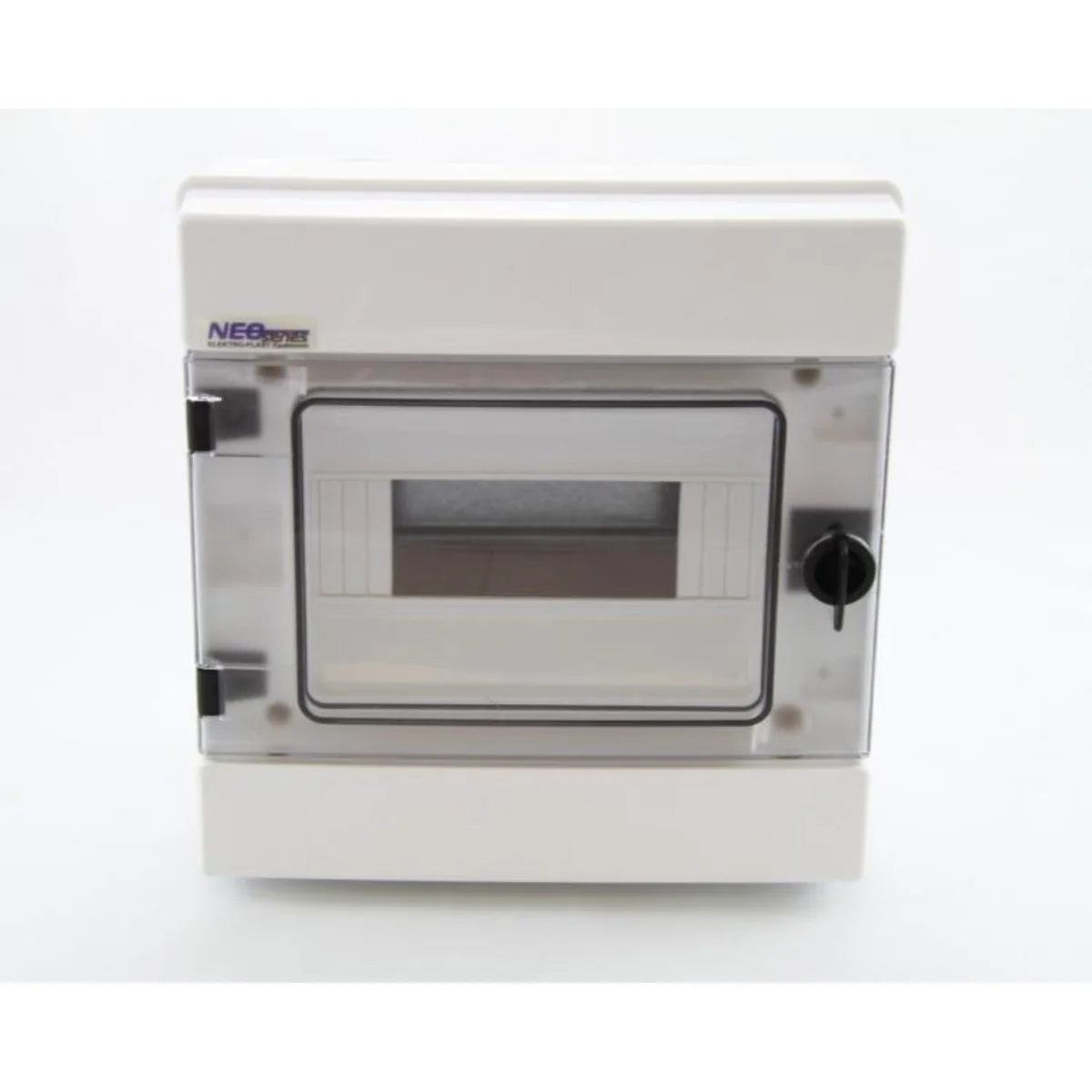 Hermetické rozváděče řady RH "NEO" jsou určeny pro domácí i průmyslové použití s možností instalace nadproudových vypínačů a elektrických zařízení. Jsou k dispozici ve verzi pro povrchovou montáž a jsou široce používány ve venkovních instalacích. Technické vlastnosti: rozvaděče vybavené průhlednými, tónovanými dvířky otevíranými do strany (vlevo nebo vpravo), přizpůsobené pro montáž zámku na klíč, dostupné v bílé barvě, vyrobené z vysoce kvalitního materiálu >ABS<, odolné vysokým teplotám do 960oC (test se žhavicí tyčí - platí pro svorkovnici, provozní stabilita od -25oC do +60oC, nárazuvzdornost (stupeň IK 07), možnost instalace přístrojů o hloubce 68 a 75 mm, modely 12-modulové a větší vybavené zeslabením ve stěnách pro kabelové vstupy a instalační trubky, možnost utěsnění dveří, rozvaděče vybavené: svorkovnicemi pro N a PE kolejnice, montážní držák TH 35, samolepící štítek pro popis.