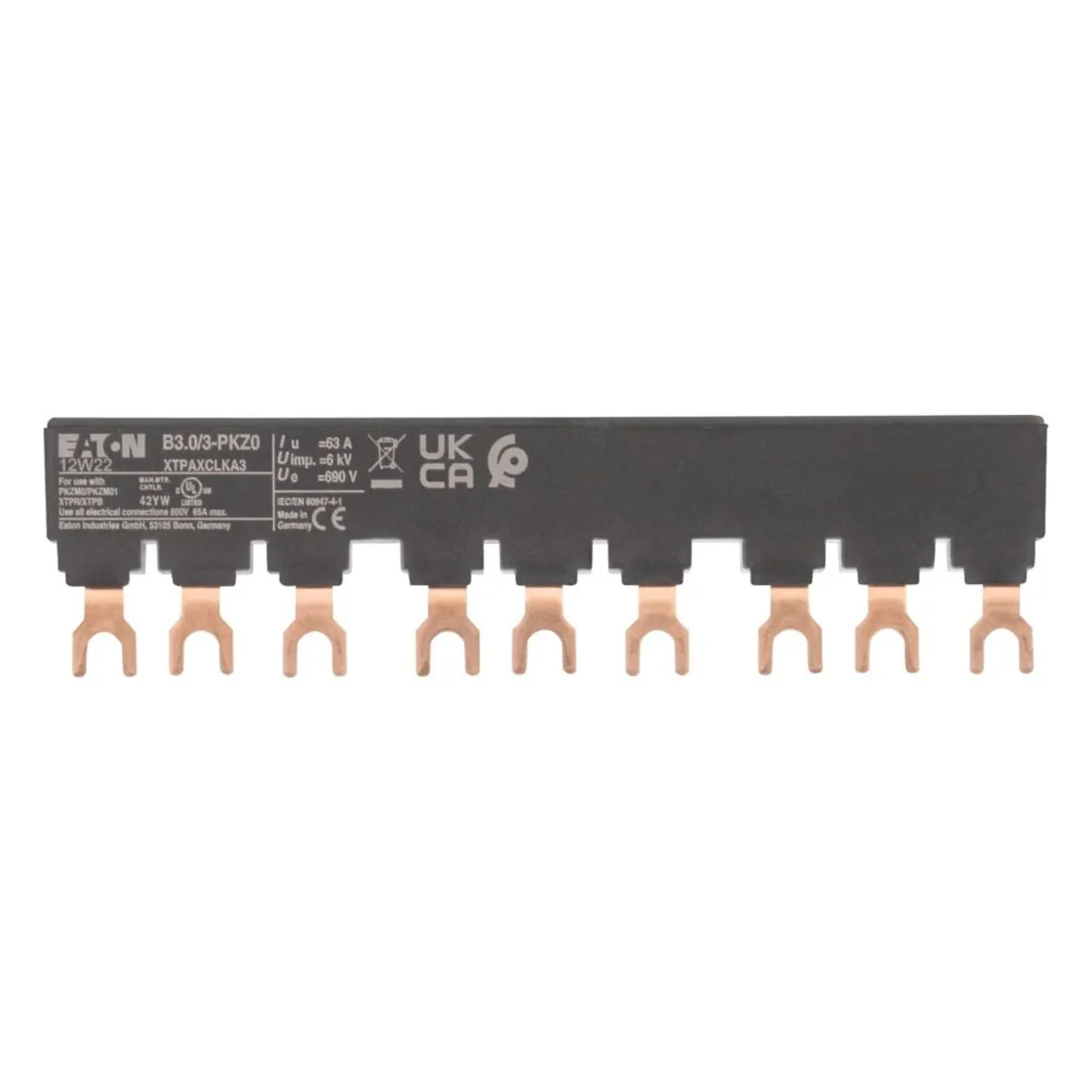 Třífázové můstkové bloky, napájení na svorkách 1, 3, 5. Dotykově chráněné, zkratuvzdorné, Ue = 690 V, Iu = 63 A. Rozšířeno střídavou instalací. K PKZM0-… nebo PKE bez bočních pomocných kontaktů nebo vypínacích spouští.