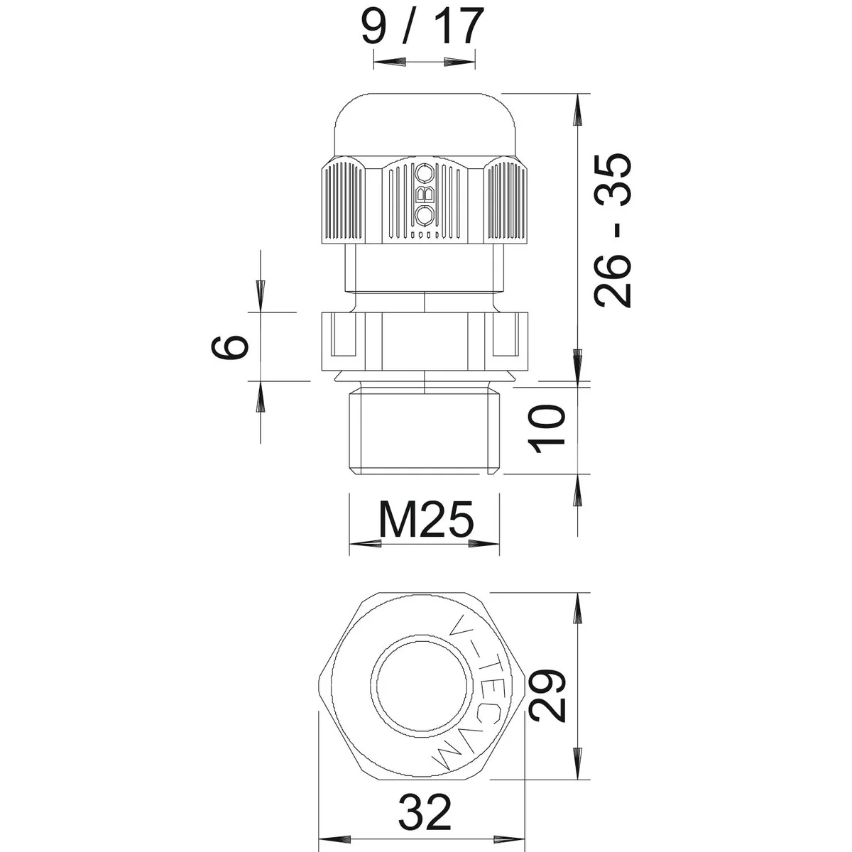Vývodka V-TEC VM M25X1, 5 kusů Odolná kabelová vývodka s metrickým závitem dle IEC 423 s provedením převlečné matice zajišťující vysokou těsnost. Odlehčení tahu, ochrana proti zkroucení a těsnost po celé montážní ploše. Těsnící kroužek z polychloroprenu/ABS pryže. Nastříkané těsnění na mezitrubku, není třeba použít závitový těsnící kroužek, schválení VDE dle DIN EN 50262, třída ochrany IP68 při 5 bar/1h. Rozsah provozních teplot -20 °C až +65 °C.