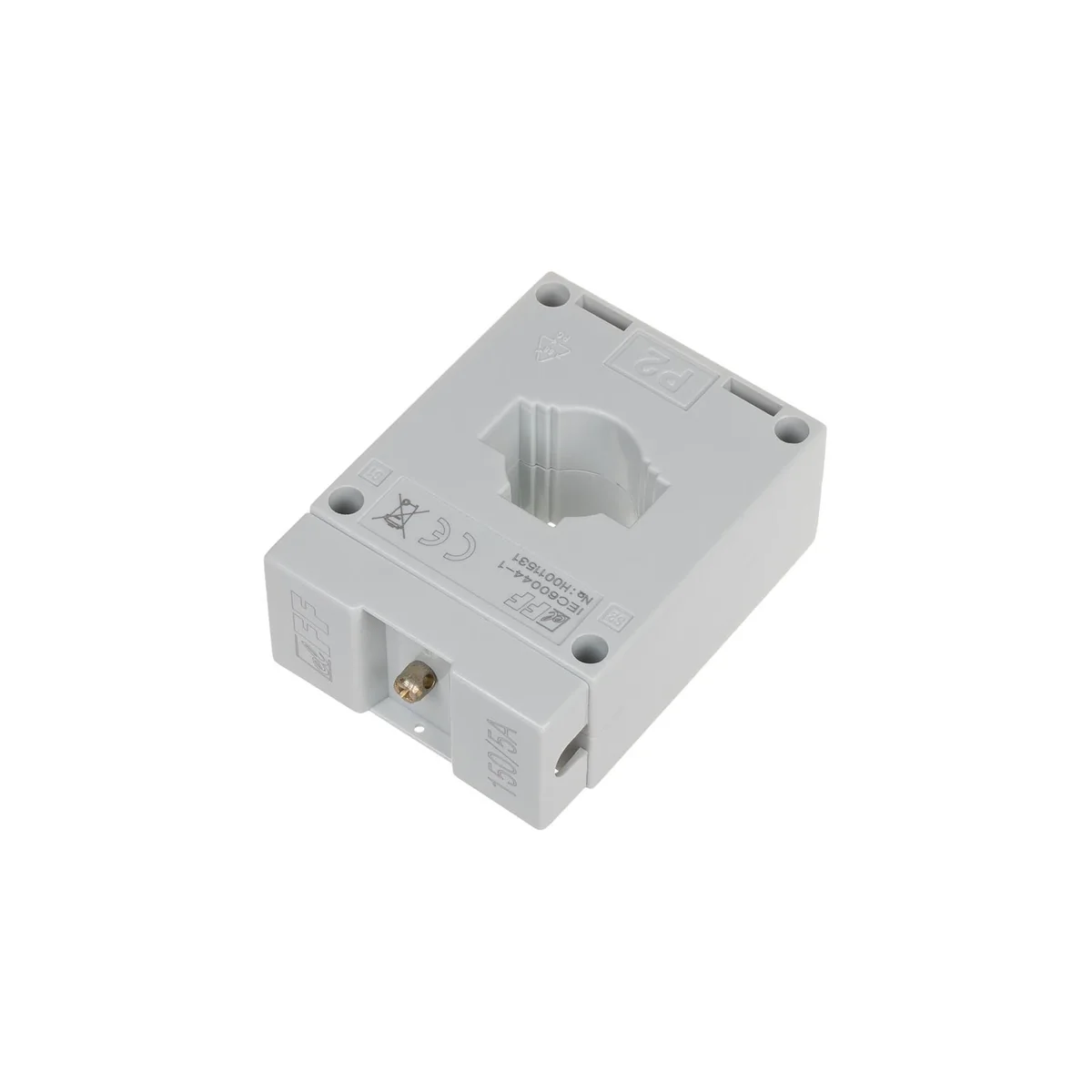 Proudový transformátor 150/5A. Proudový transformátor slouží k proporcionální změně vysokých proudů na nižší hodnoty, přizpůsobené měřicím rozsahům řídicích a měřicích zařízení.