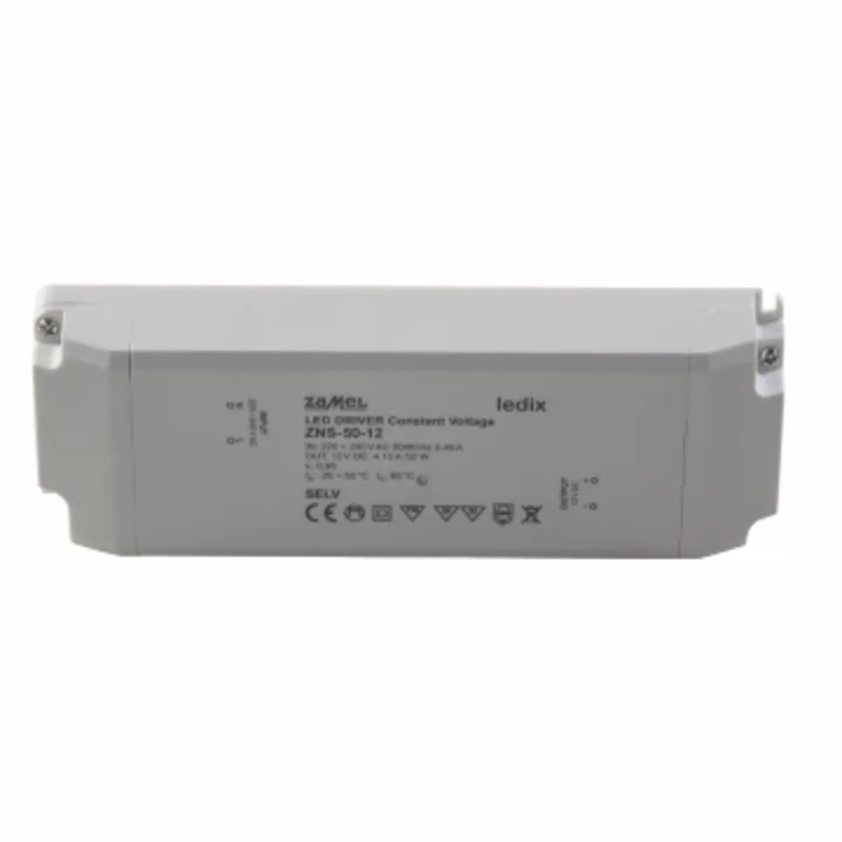 Spínaný zdroj ZNS-50-12 je určen pro použití v domácích instalacích LED osvětlení. Modulární konstrukce umožňuje snadnou a pohodlnou instalaci na vodorovné i svislé plochy v interiéru. Zdroj má výstupní napětí 12 V DC a výstupní výkon 50 W. Vestavěné ochrany zaručují nepřetržitý a nerušený chod všech připojených LED prvků.