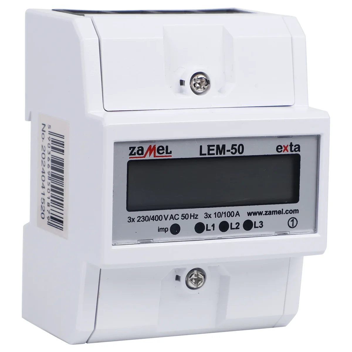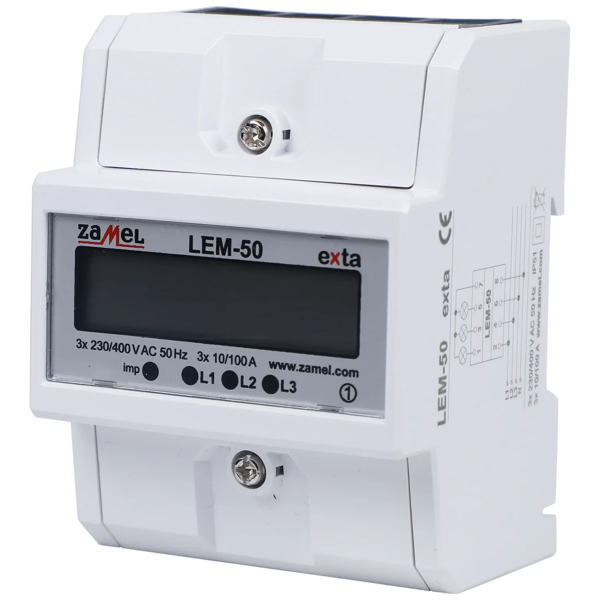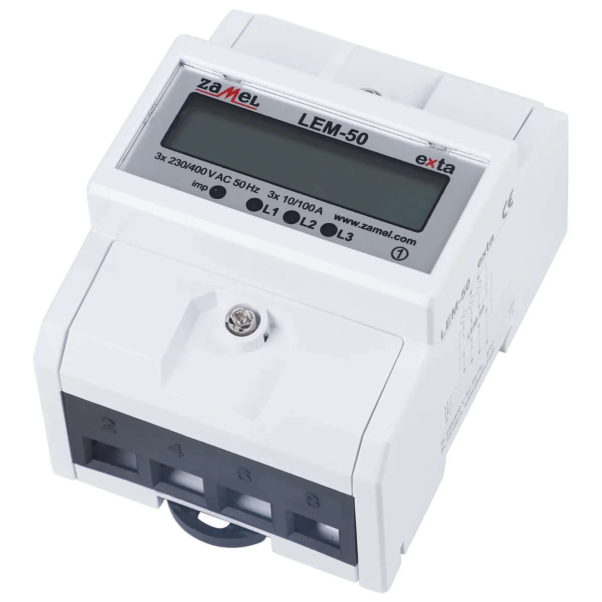 Das LEM-50 Messgerät dient zur Überwachung des dreiphasigen Stromverbrauchs in Wohn-, Gewerbe- und Industrieanwendungen. Es misst und zeigt den aktiven Stromverbrauch in kWh an. Das Messgerät lässt sich einfach auf einer TH-35 (DIN)-Schiene montieren. Abdeckungen ermöglichen eine Versiegelung.