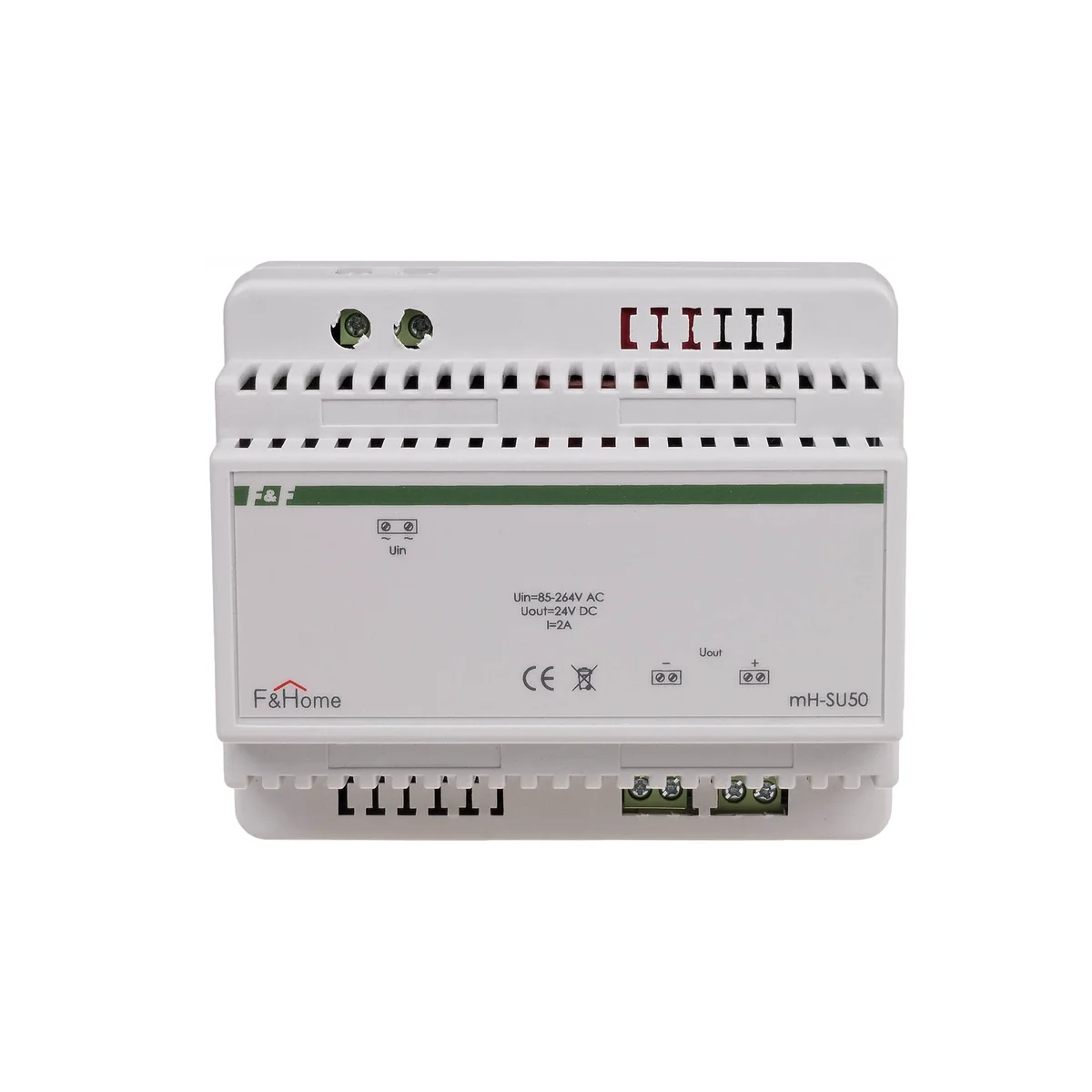 Das Netzteil mH-SU24 bzw. mH-SU50 dient zur Stromversorgung von Systemkomponenten, die mit 24V DC versorgt werden. In der Praxis reicht für ein kleines System eine mH-SU24-Einheit aus, für eine große Anlage empfiehlt sich eine einzelne mH-SU50-Einheit. Aus Sicherheitsgründen wird empfohlen, im Stromversorgungskreis das Filtermodul mH-SP und den Überstromschutzschalter B6A zu verwenden. Das Modul wird in die Schaltanlage eingebaut und belegt ein Feld von 3 Modulen (mH-SU50: 6 Module). Das Gerät verfügt über einen elektronischen Schutz gegen Kurzschluss und Überhitzung. Ein 24V-Leitungsschutz ist nicht erforderlich.