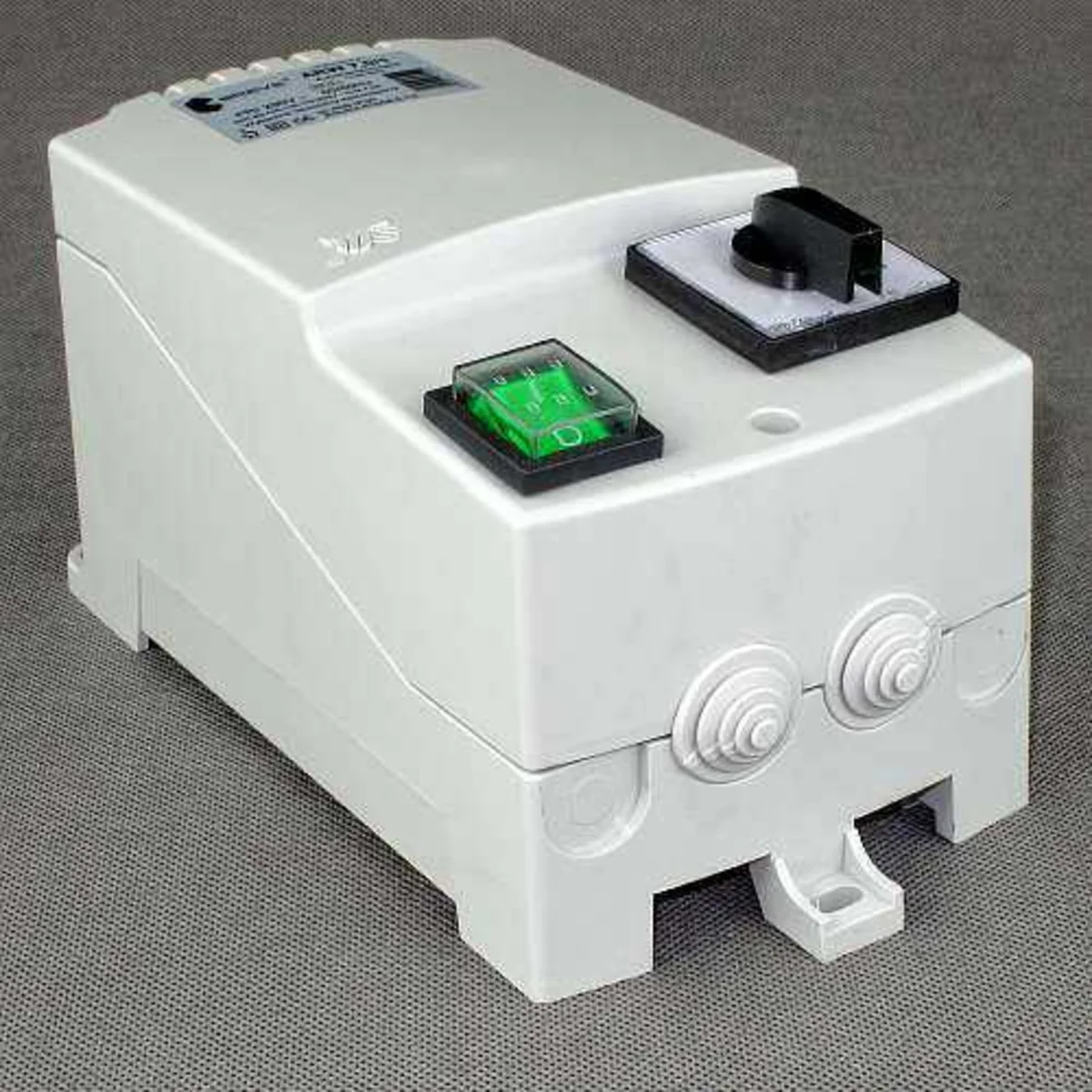 Transformator-ARW-Regler zur Drehzahlregelung von einphasigen Lüftermotoren, spannungsgesteuert. Installiert in industriellen Lüftungs- oder Heizungsanlagen. Mit dem auf der Gehäuseplatte platzierten Drehknopf lässt sich die Drehzahl in fünf Stufen einstellen. Ausgestattet mit einem unabhängigen Schalter, der die Aktivierung mit Hintergrundbeleuchtung anzeigt.