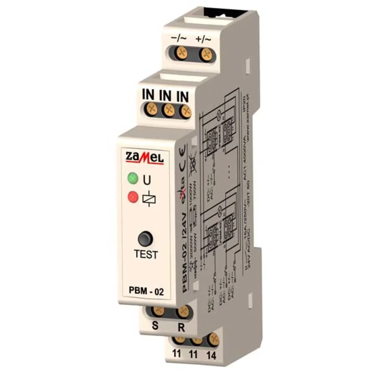 Bistabiles Relais PBM-02/24V. Es dient zur Steuerung von Beleuchtung oder anderen Geräten über parallel geschaltete unipolare Taster. Durch wiederholtes Drücken einer der Tasten werden die an die Ausgangsklemmen angeschlossenen Geräte ein- oder ausgeschaltet. Die Set- und Reset-Steuereingänge ermöglichen die zentrale Steuerung einer Gruppe von Relais. Durch die Verwendung des internen Speichers im bistabilen Relais können Sie sich bei einem Stromausfall an den aktuellen Zustand erinnern.