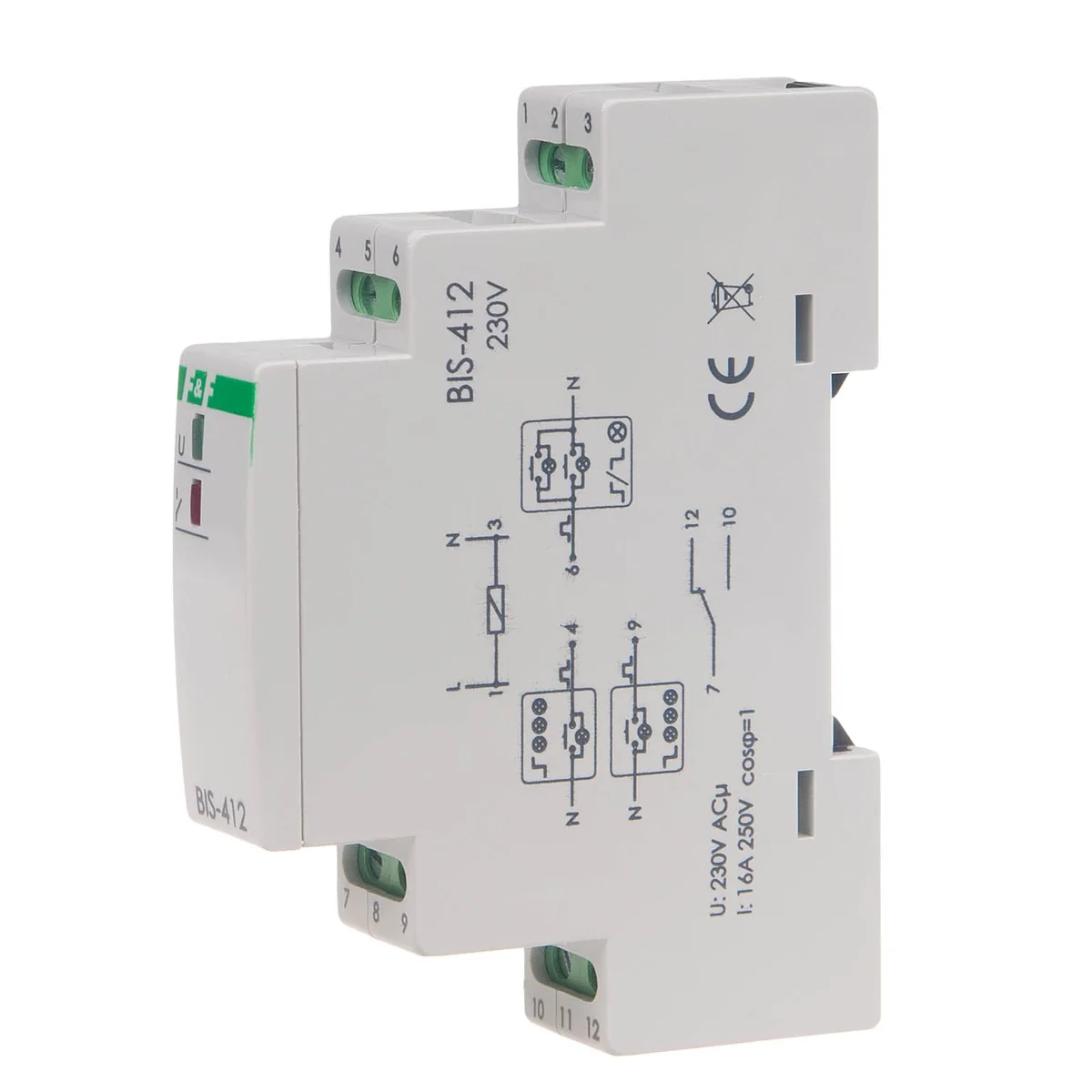 Das elektronische bistabile Stromstoßrelais BIS-412 ist für den Gruppenbetrieb konzipiert. Ein einzelnes Relais ermöglicht zum Ein- und Ausschalten des gesteuerten Empfängers nach jedem Stromimpuls, der durch Drücken der Taste (Klingelton) der Ortssteuerung verursacht wird. Das Gruppensystem ermöglicht das Ein- und Ausschalten aller an einzelnen Relais angeschlossenen Empfänger mit den zentralen Steuertasten.