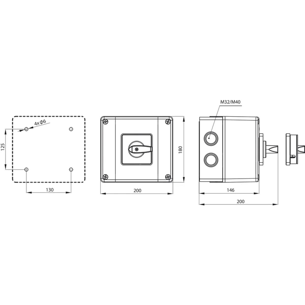 Nockenschalter 100A, einpoliger 1-0-2-Schalter, im OB18-Gehäuse SK100-1.834\OB18