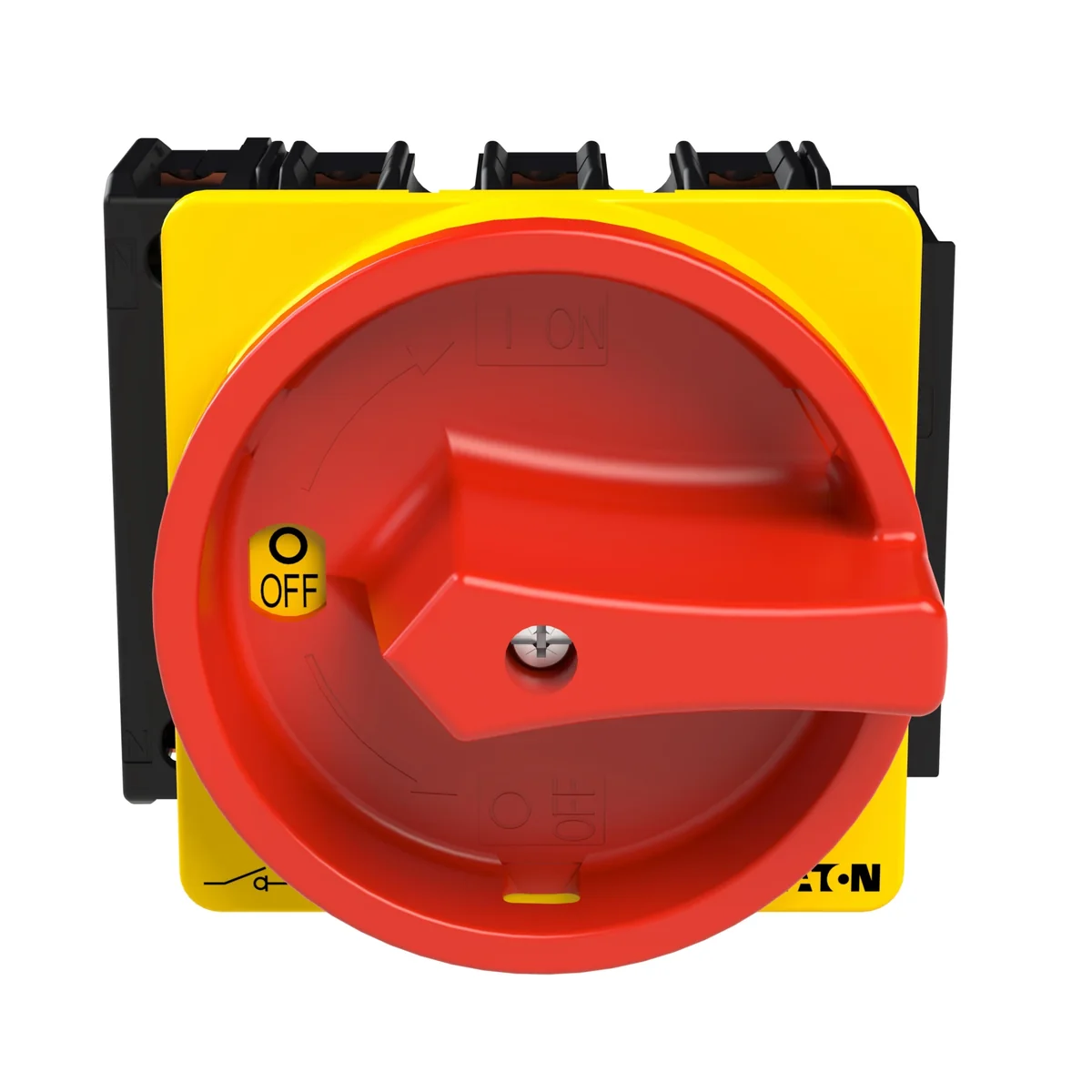 Ein/Aus-Schalter In=63A P=37kW. Mit rot/gelb abschließbarem Drehknopf nach IEC/EN 60204-1, VDE 0113 Teil 1