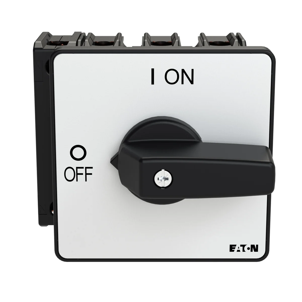 Ein/Aus-Schalter In=63A P=37kW. Ohne Hilfsstromkreise. Mit schwarzem Knopf und Frontplatte