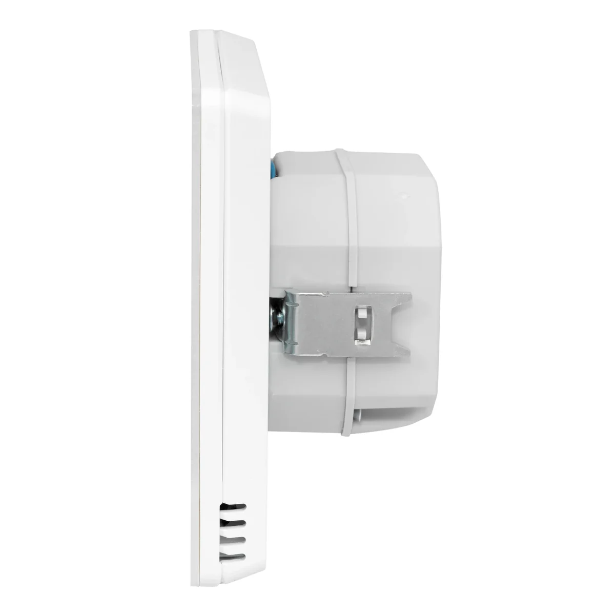 Der GKW-01 ist ein moderner Temperaturregler zur Steuerung von Fußbodenheizungen oder anderen Heizsystemen. Die Temperatur lässt sich über Touch-Tasten am Gehäuse oder per Fernzugriff über die Supla-App einstellen. Der WLAN-Temperaturregler ist mit einem LED-Matrix-Display mit automatischer Helligkeitsanpassung ausgestattet. Der GKW-01 verfügt außerdem über einen spannungsfreien 16-A-Relaisausgang zur Steuerung von Elektroheizungen oder Ventilen. Das Gerät verfügt über eine integrierte Uhr, die es ermöglicht, unabhängig von der Internetverbindung einem voreingestellten Wochenprogramm zu folgen. Der WLAN-Temperaturregler kann einen externen Sensor (z. B. einen Fensteröffnungssensor, einen NTC-Temperatursensor, einen Hotelkartenleser) anschließen und eine Aktion (z. B. das Ausschalten des Thermostats) programmieren.