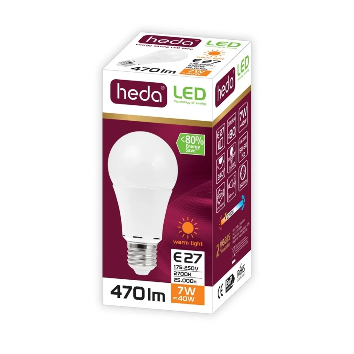 HEDA LED-Glühbirne 7W E27 470lm WW