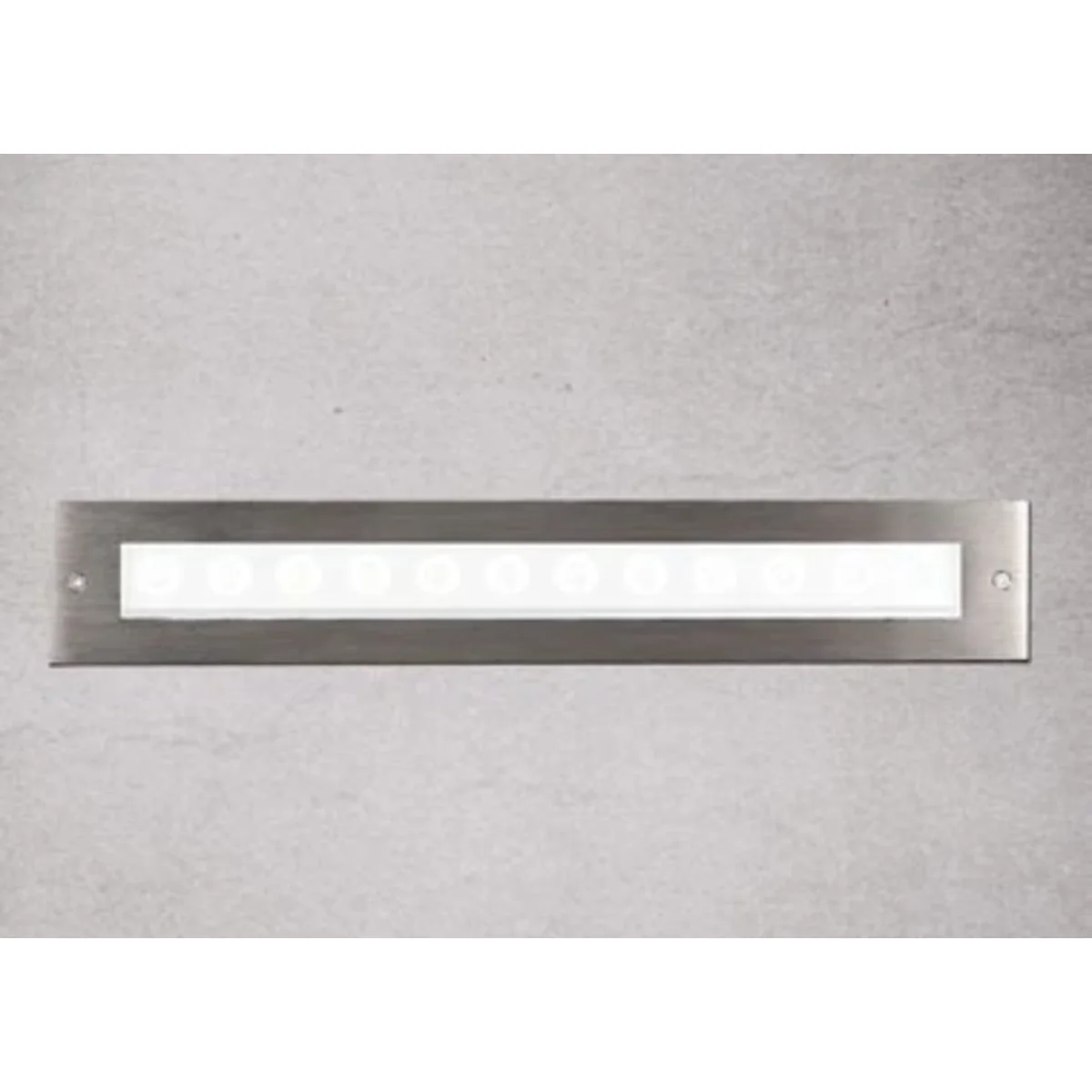 Die Lampe dient zur Beleuchtung von Gebäuden. Es handelt sich um eine Einbauleuchte, die im Boden nahe der Gebäudewand montiert werden kann.