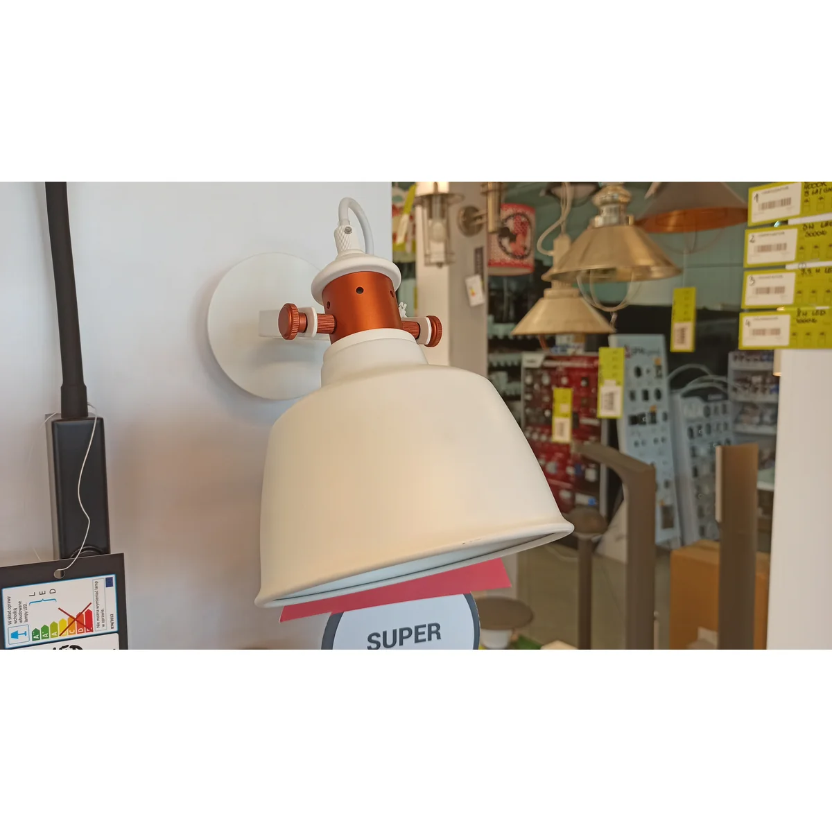 Die Lampe weist leichte Gebrauchsspuren und Verfärbungen auf, die auf dem Bild sichtbar sind.