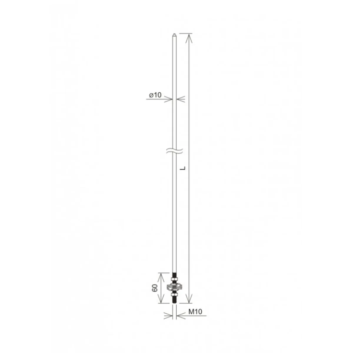Isolierte Mastspitze. Ein mit zwei Schrauben verschraubter Dreiplattenverbinder ermöglicht den Anschluss eines runden Erdungskabels.