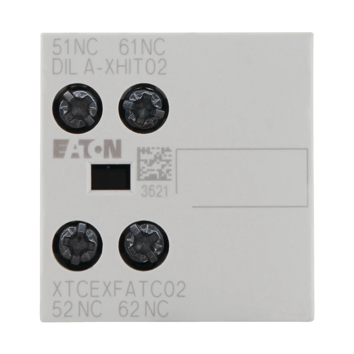 Hilfsschaltermodul, zwangsläufig, Schaltelemente nach EN 50005, Kombinationen in Ausführung E nach EN 50011 werden empfohlen., Gleichstrombetätigter Kontakt DILA(C)-22 darf nur mit zweipoliger Kontaktfunktion angeschlossen werden : geeignet zum Anschluss an Verdrahtungsbrücken, 2-polig, Anschlussart: Schraubklemmen, Bemessungsbetriebsstrom AC-15 220 V 230 V 240 V: Ie= 4 A, Bemessungsbetriebsstrom AC-15 380 V 400 V 415 V: Ie = 4 A, bestückt mit Kontakten R = Öffnerkontakte: 2 R, Montageart: Frontmontage, verwendbar für: DILM7…, DILM9…, DILM12…, DILM15…, DILL…, MSC-D… M7(9, 12, 15)…, MSC-R…M7(9, 12), Ausführung: hohe Ausführung, Hinweise: Zwangsgeführte Kontakte gemäß IEC/EN 60947-5-1 Anhang L, sowohl innerhalb des Leistungsschaltermoduls als auch für integrierte Hilfsschalter Schaltmodule in DILM 7 - DILM32., Hilfs-Öffnerkontakte als Spiegelkontakt gemäß IEC/EN 60947-4-1 Anhang F (unverzögerter Öffnerkontakt)
