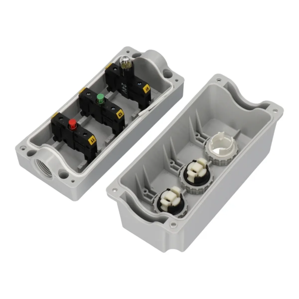 Komplette 3-Loch-Kassette mit LC-, KC-, KZ-Antrieb und 2 Tüllen M20 grau 230V ST22K3\05-2