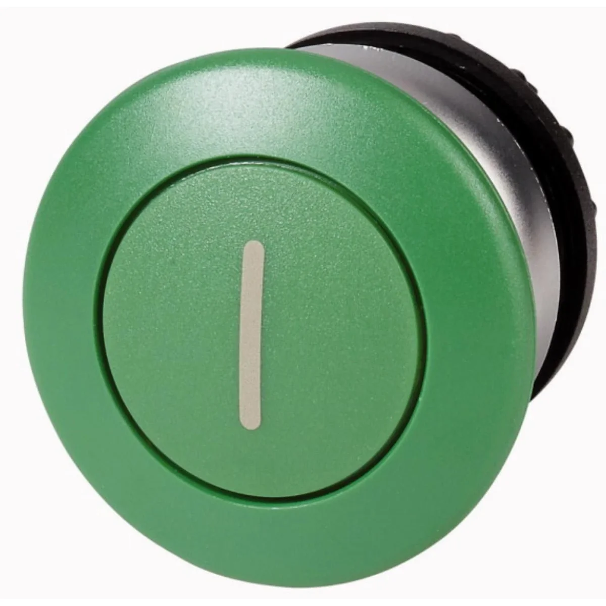 Pilzknopf grün, beschriftet mit I, Federrückstellung