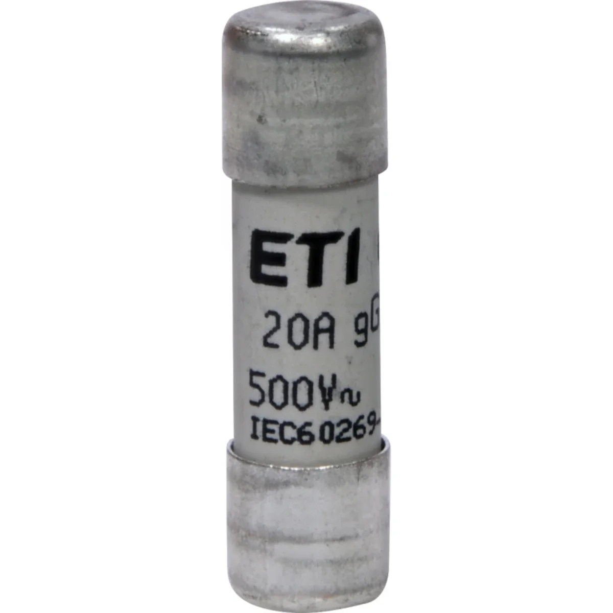Zylindrischer Sicherungseinsatz CH 10x38 gG 20A 500 - träge. Zylindersicherungseinsätze CH (mit gG- und aM-Charakteristik) werden zum Schutz elektrischer Geräte und Anlagen vor den Auswirkungen von Kurzschlüssen und Überlastungen eingesetzt. Zylindrische Sicherungseinsätze haben keine Anzeige.