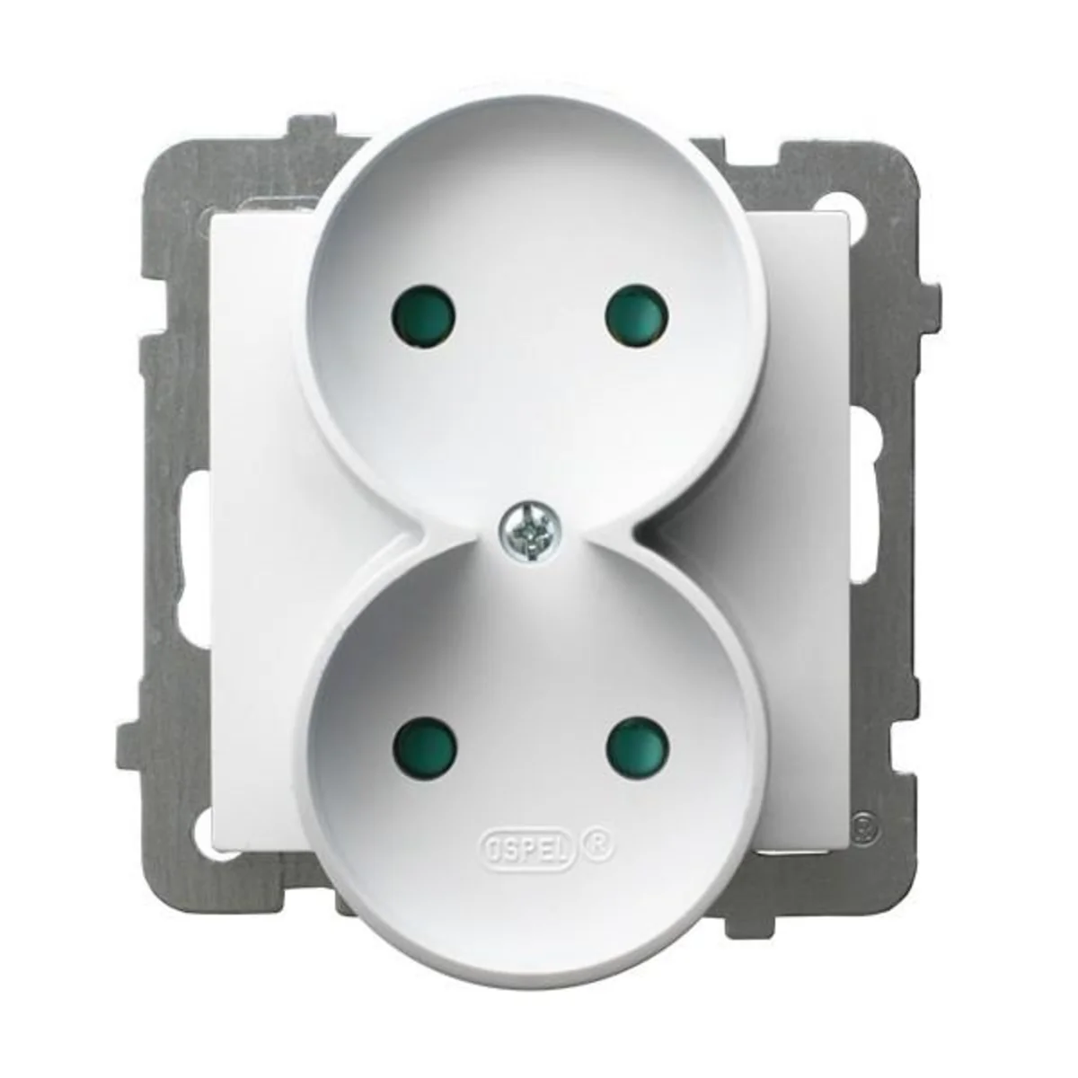 Steckdose doppelt, ohne Rahmen, mit Blenden für Strompfade.